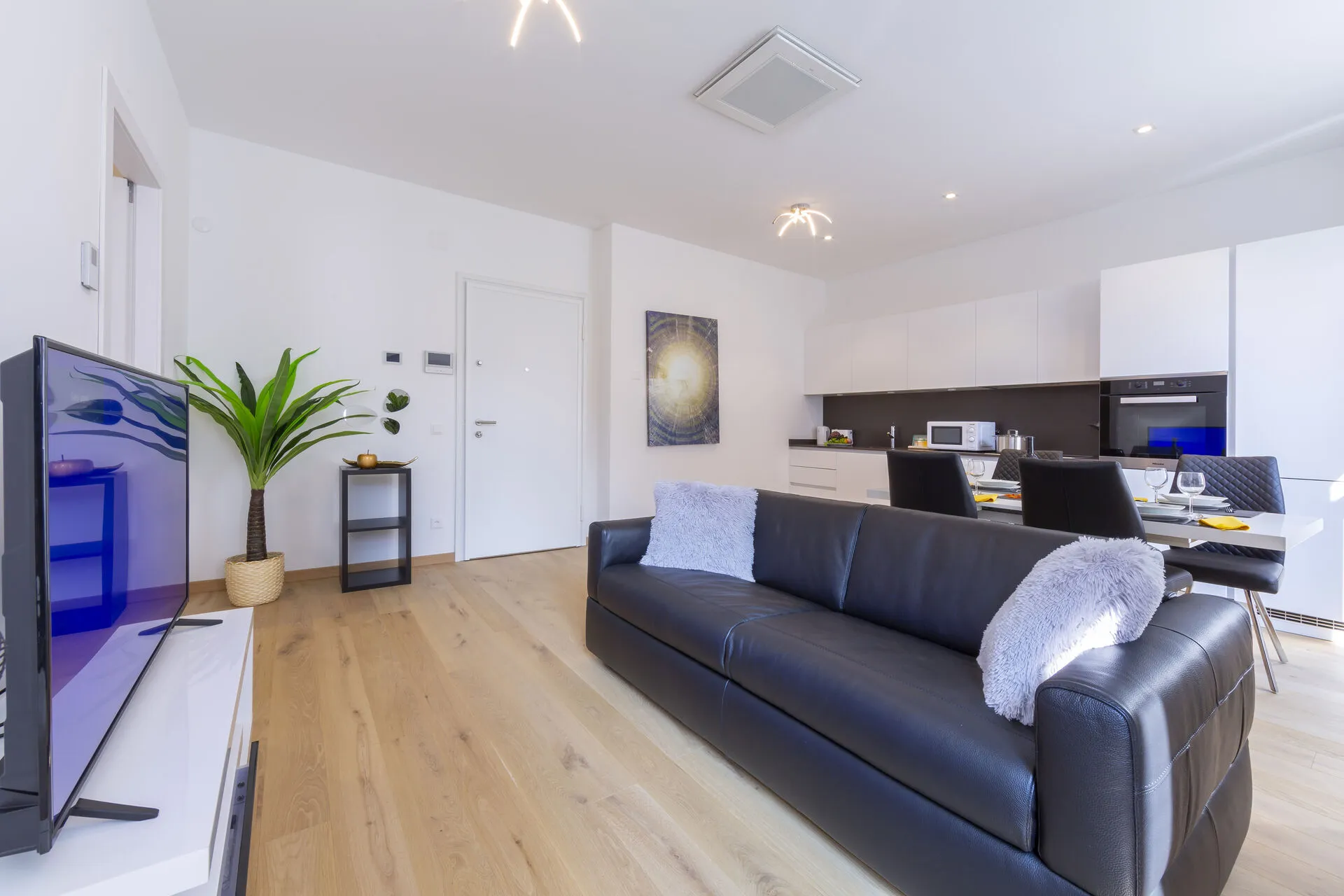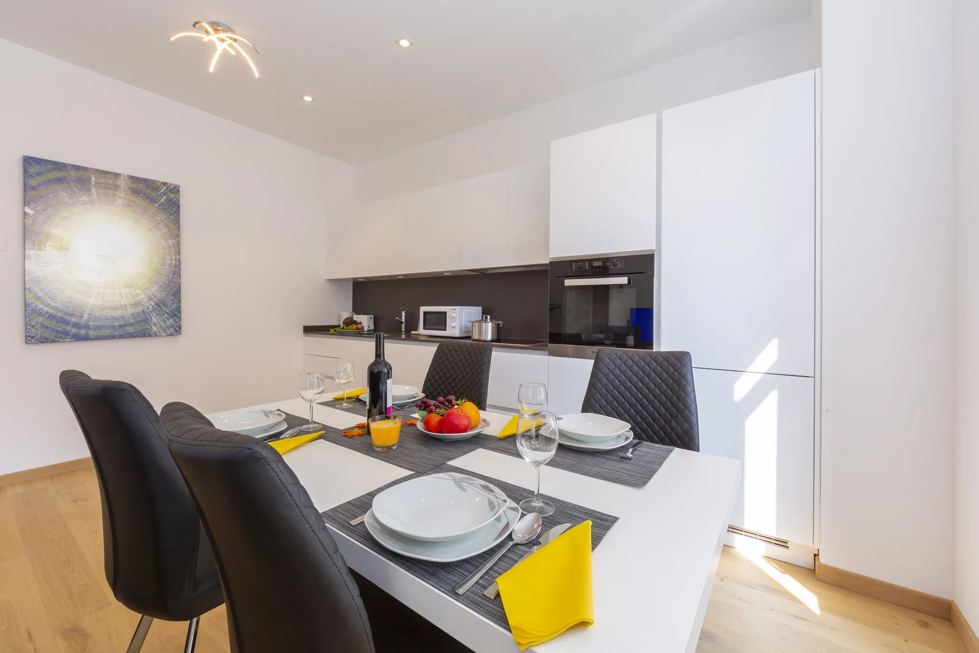 • Balcony • Lake views • Free WiFi • SAT flat screen TV • Underfloor heating • Central heating • Fan • Washing machine & tumble dryer • Ironing facilities • Lift access • City center • Car not necessary • Coffee machine – Paid public parking