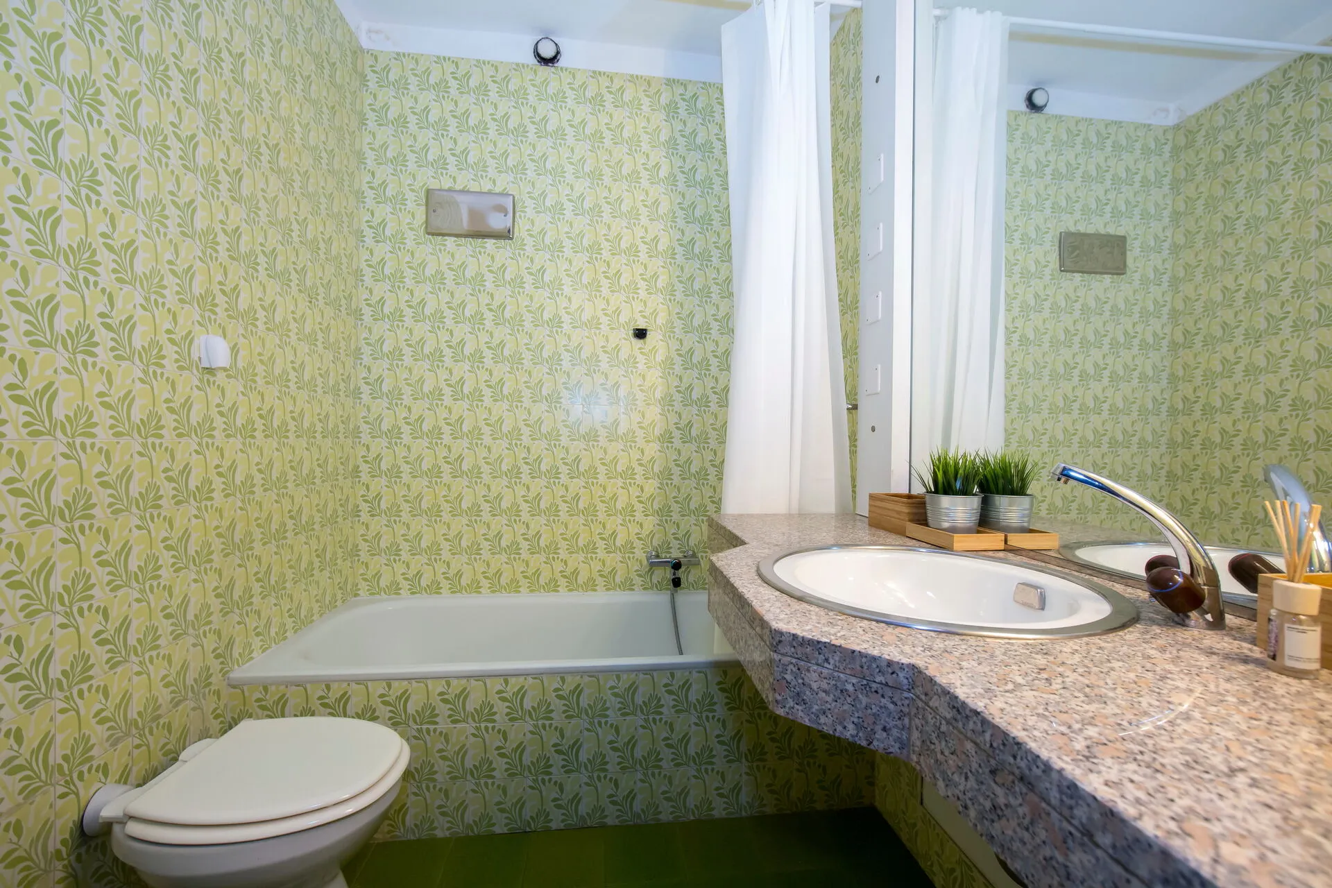 ‘Home Gardenia’ Bathroom: Family suite fitted with a bath tub, overhead shower, basin, WC + bidet