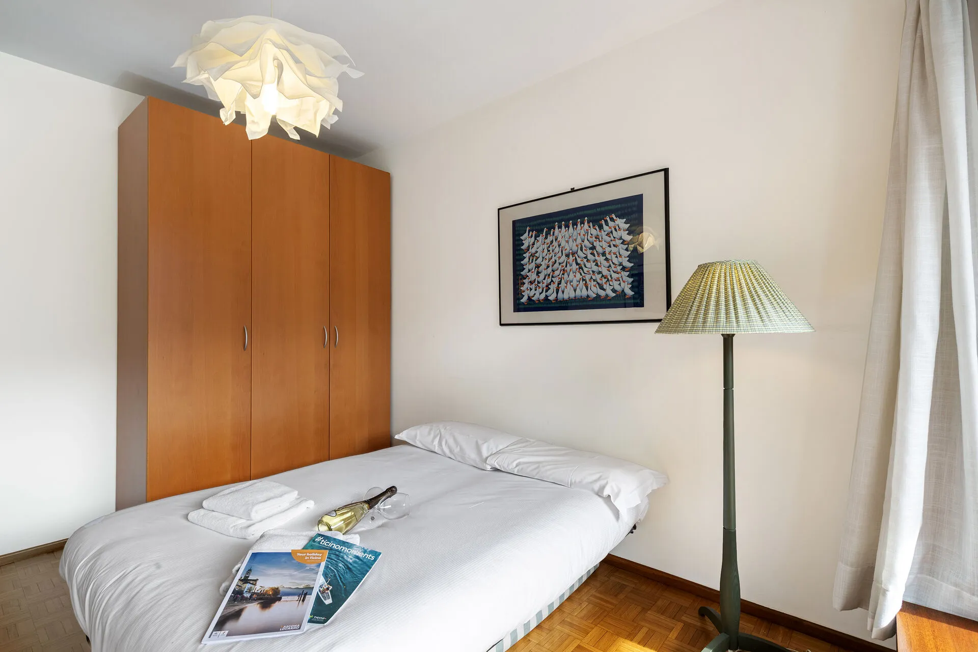 With the beautiful lakefront and Lugano’s luxury stores within walking distance, this fourth-floor holiday apartment with 2 bedrooms, a lakefront garden and a private terrace is ideal for carefree travels for up to 4.
