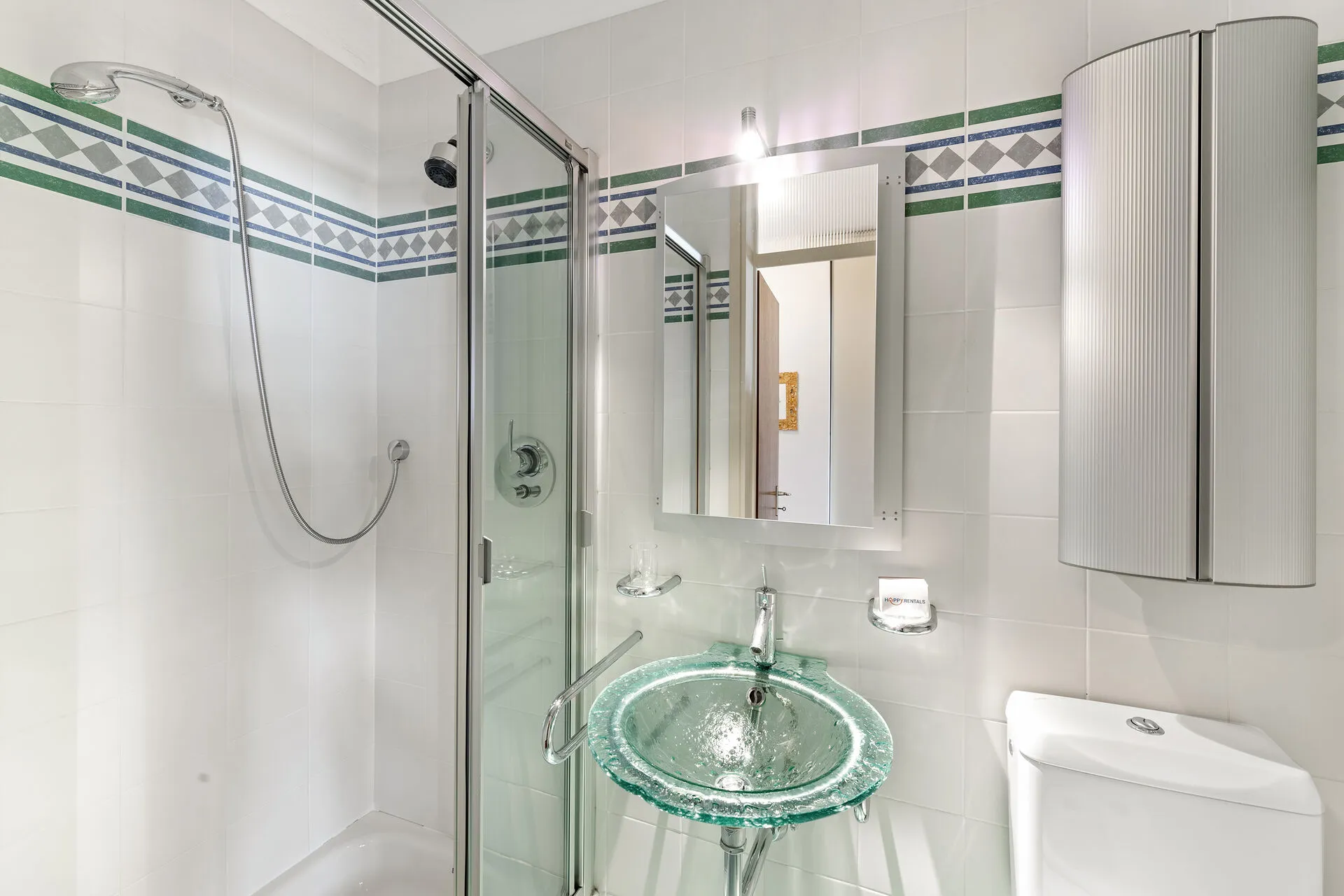 There are 2 bathrooms in the apartment, both featuring a shower and WC. The bathroom near the entrance also has a bidet.