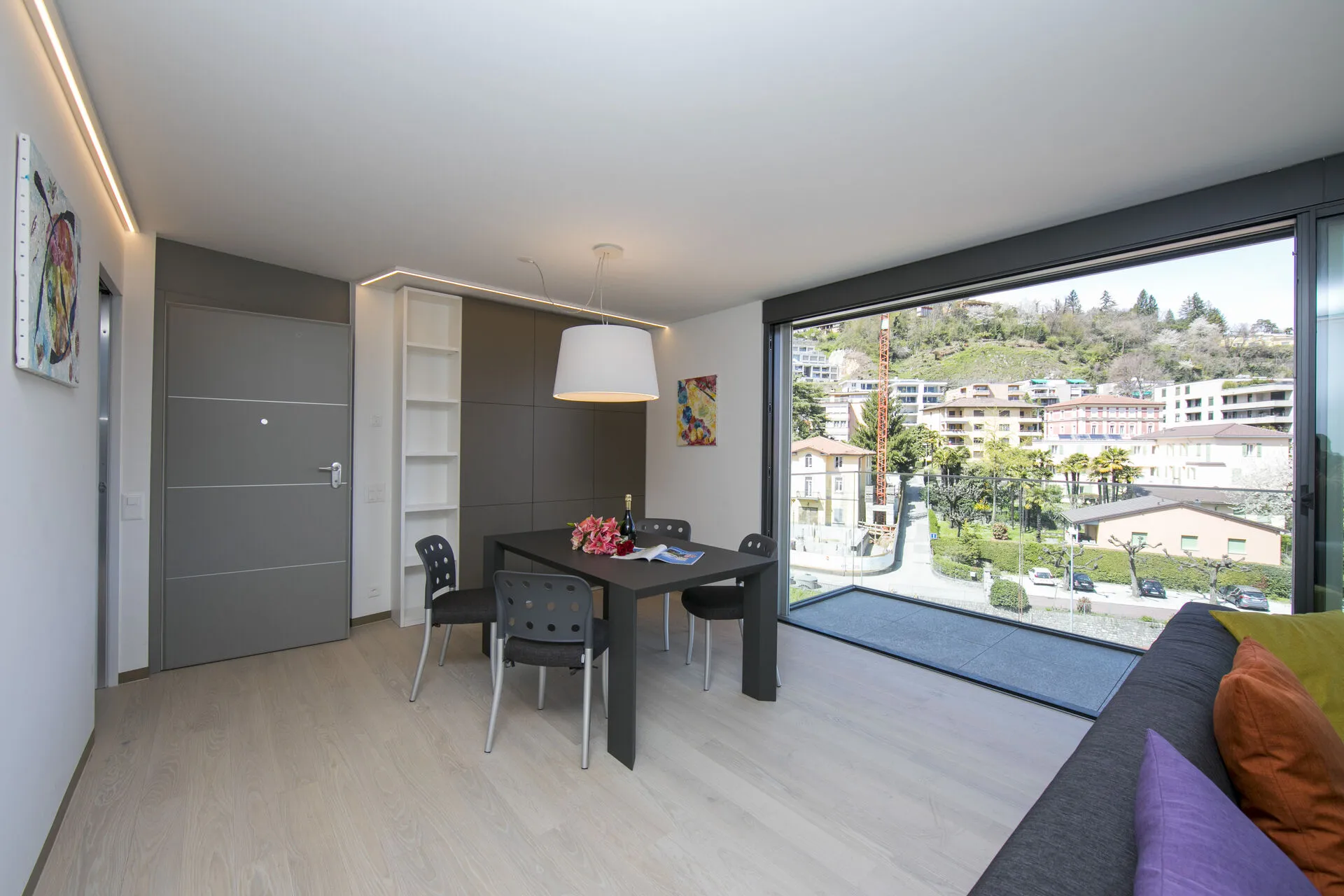 The holiday apartment enjoys an easy-going and convenient location, where they can cross over the road and enjoy the beauty of Lake Lugano from its shores. In just a 10-15 minute walk, you will reach the lakefront with the Waterjet of Paradiso, Lugano Art and Culture Centre the ferry terminal, the funicular to Mount Salvatore, restaurants, supermarkets, children’s playground and Paradiso’s train transit stop. Plus, guests can reach the centre of Lugano with its beautiful Piazza della Riforma and the luxury shopping street Via Nassa in just 25 minutes on foot/ 5-minute drive.