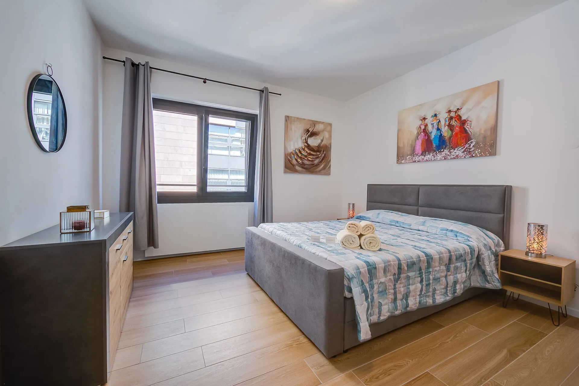 Bedroom 1: The bright master bedroom has a comfortable double bed and spacious storage.