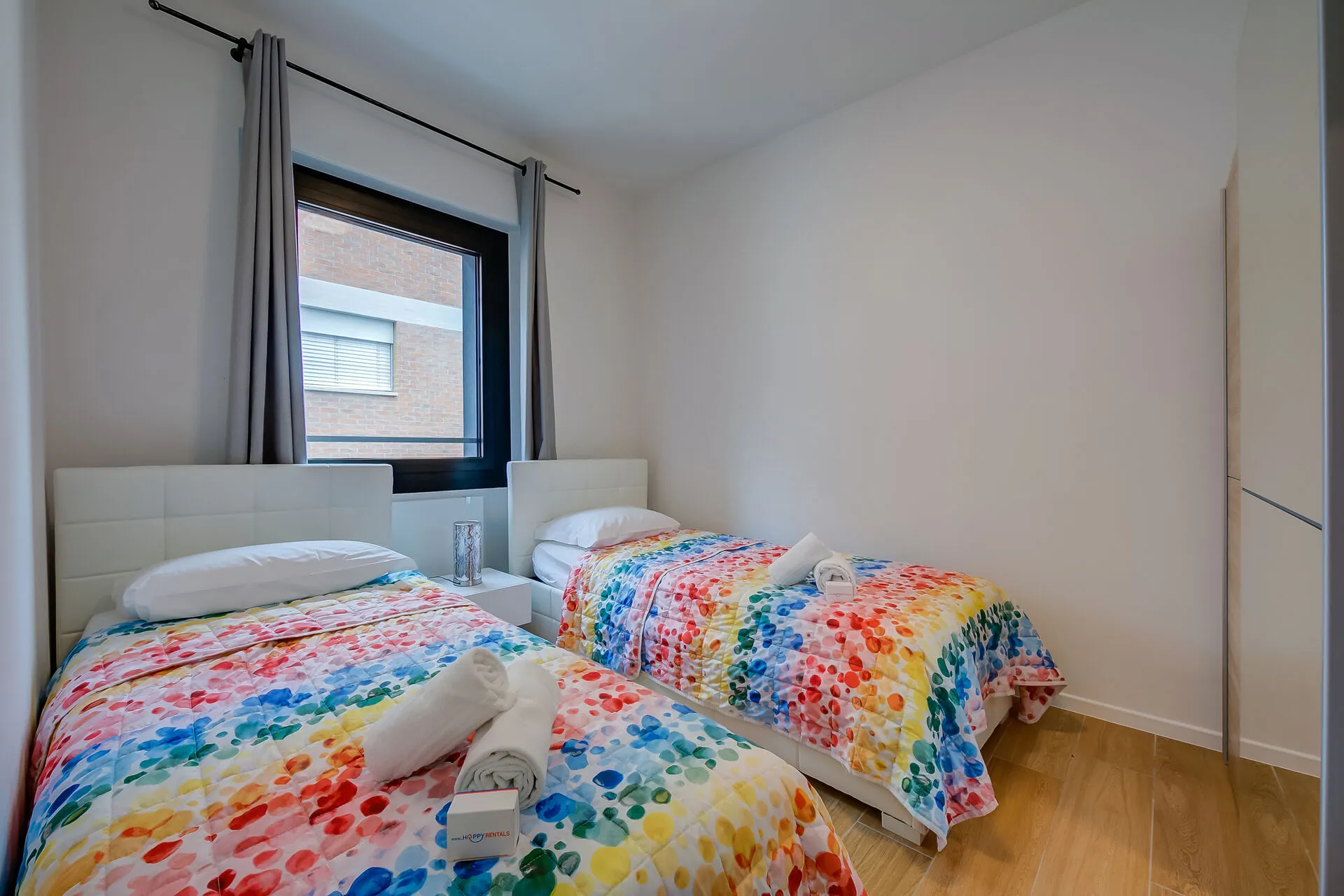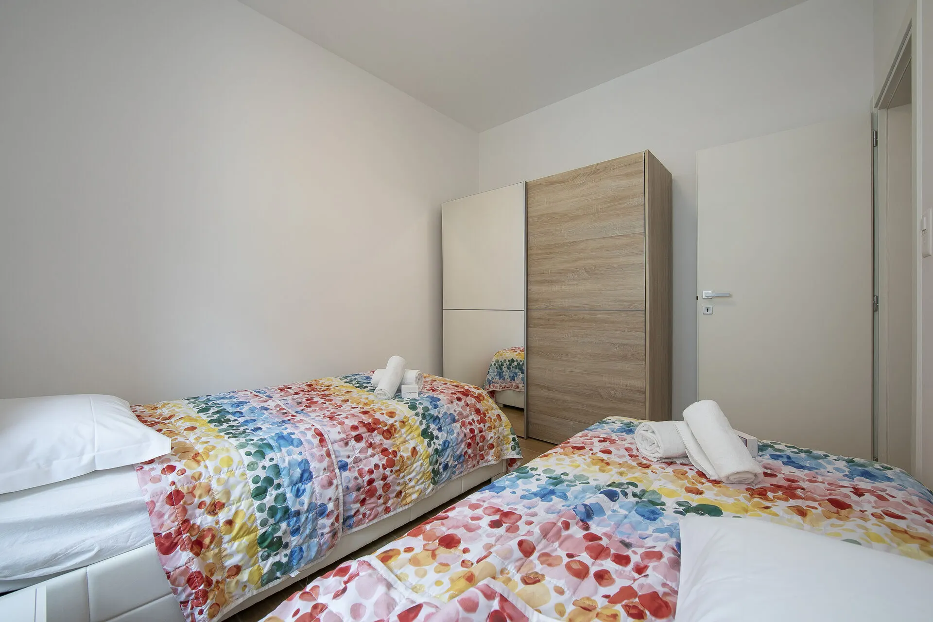 Bedroom 2: A cosy bedroom with 2 Single beds and a large fitted wardrobe.
