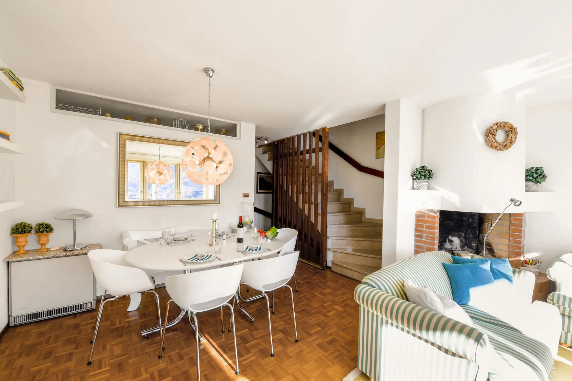 Inside, the townhouse is equipped for entertainment, featuring a books and music library, Wi-Fi, a DVD player and a Smart TV. The ambient, lake-view living room has a large comfy sofa, a dining set and a full kitchen, setting the perfect cosy setting for memorable times. A Moka coffee machine, dishwasher, oven, fridge, toaster and microwave are available for your comfort and an effortless, self-catering stay.