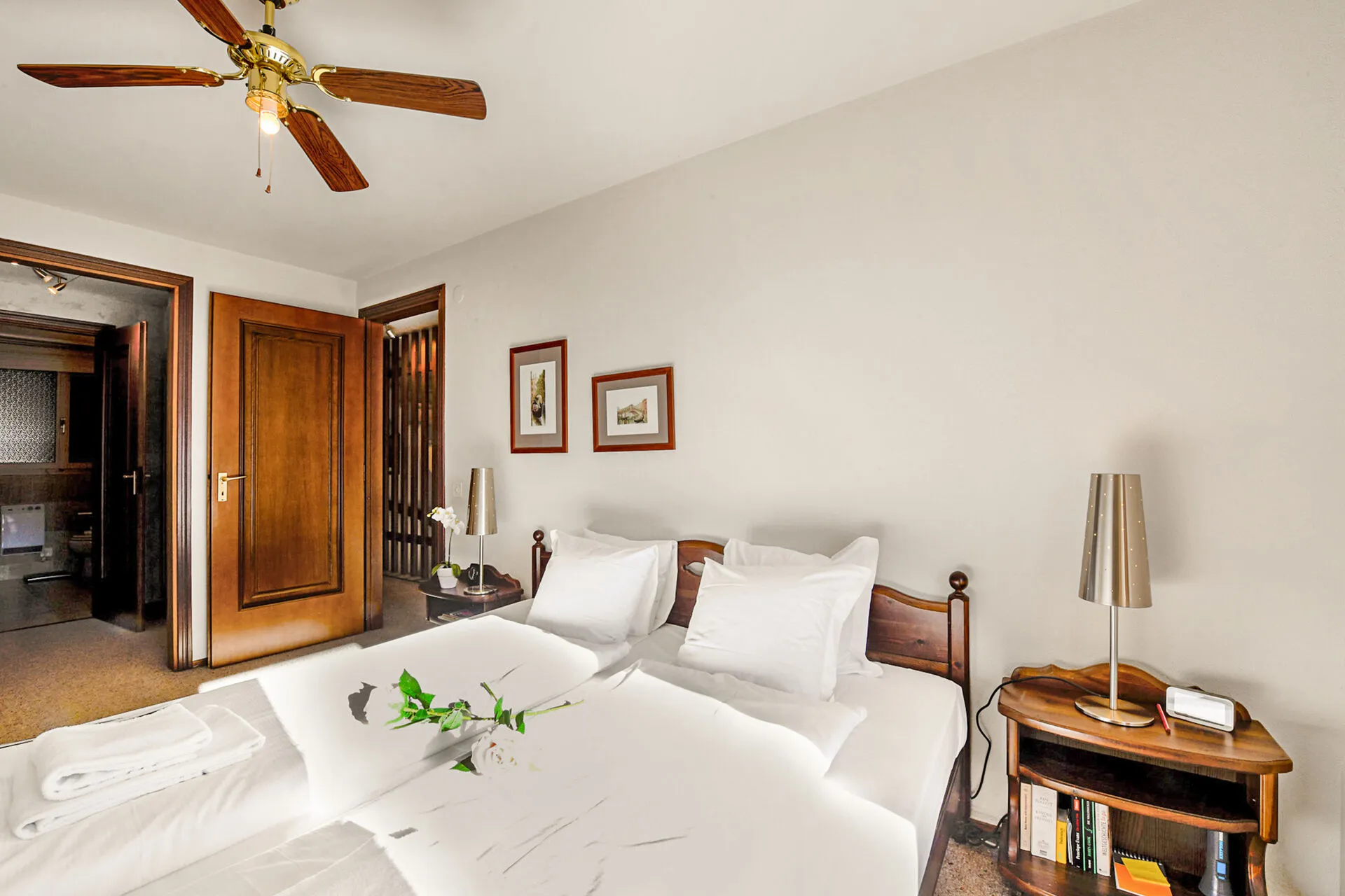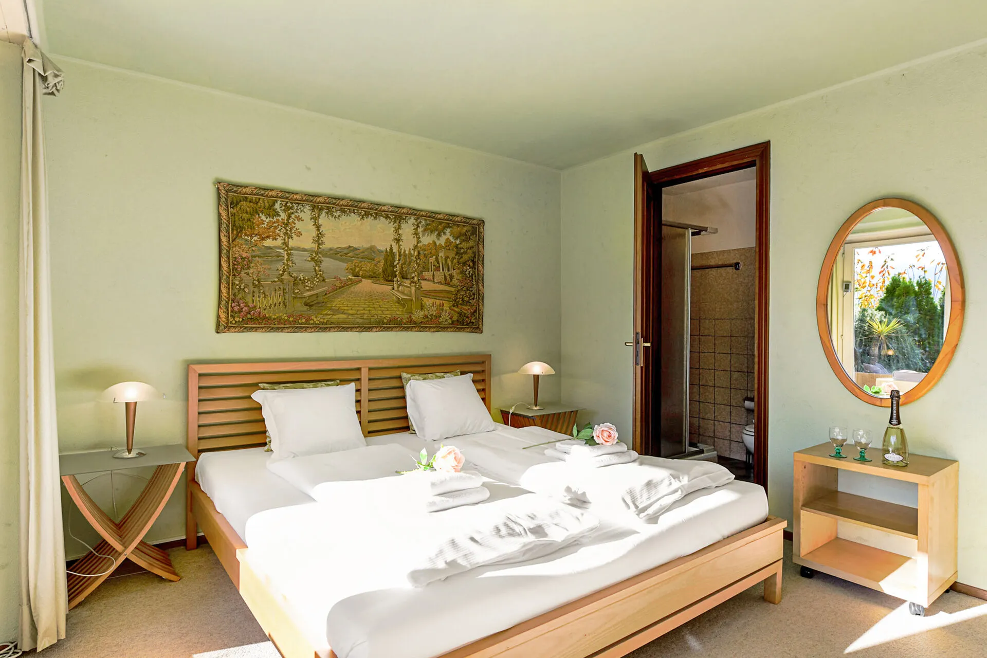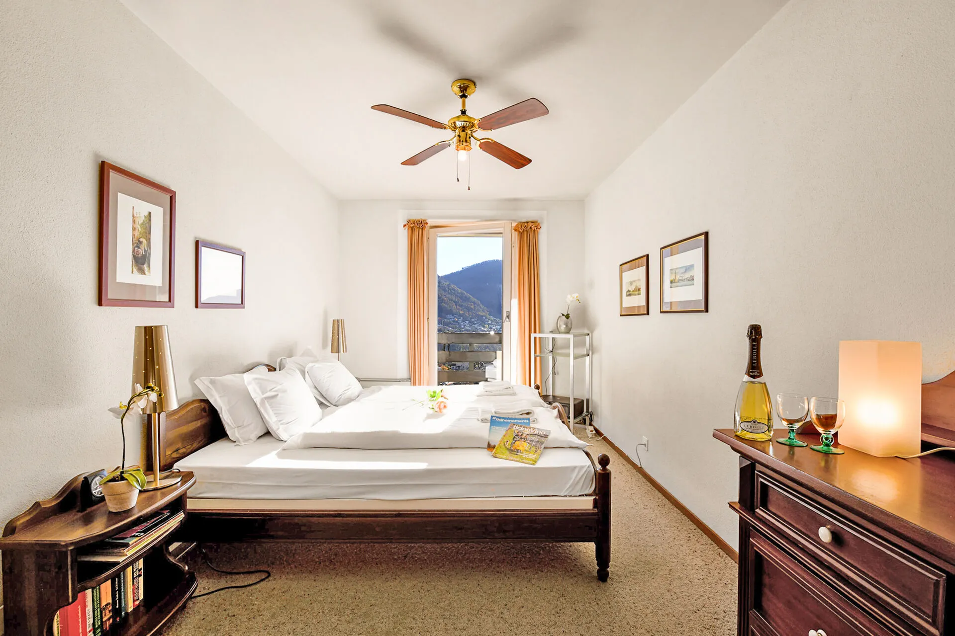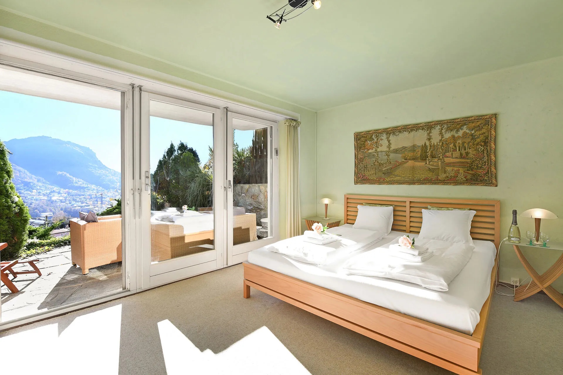 Bedroom 1: A super spacious lake-view balcony bedroom with a double bed and en suite bathroom.