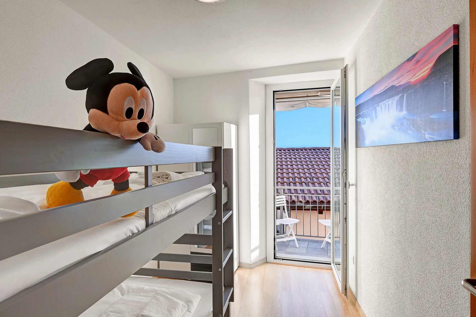 Bedroom 3: A cosy, first-floor bedroom with a bunk bed and a private balcony.