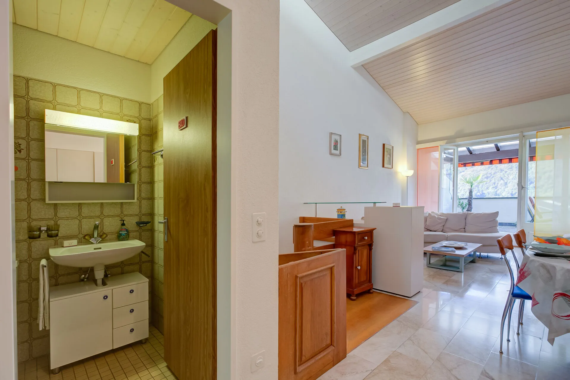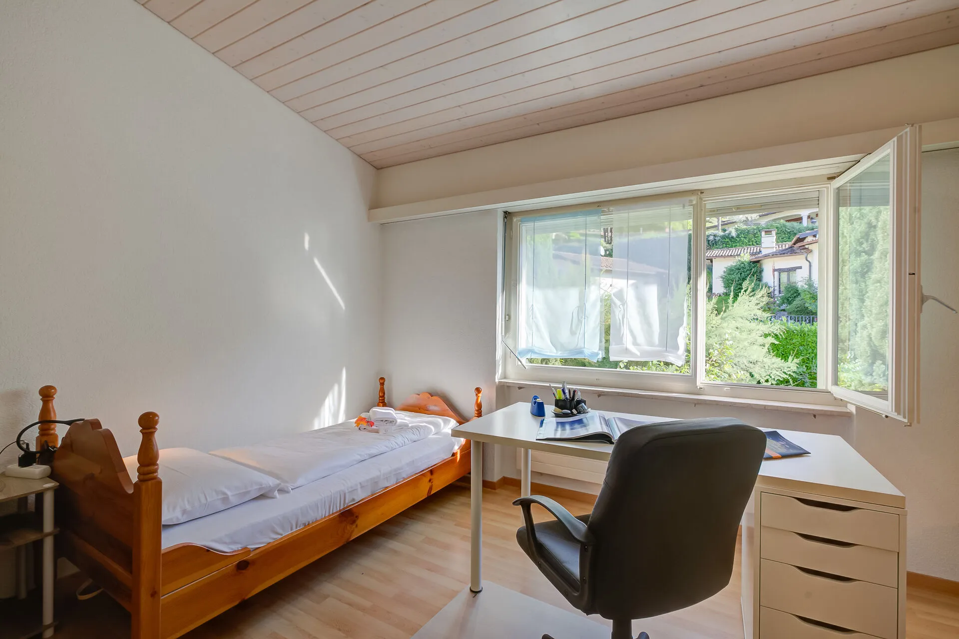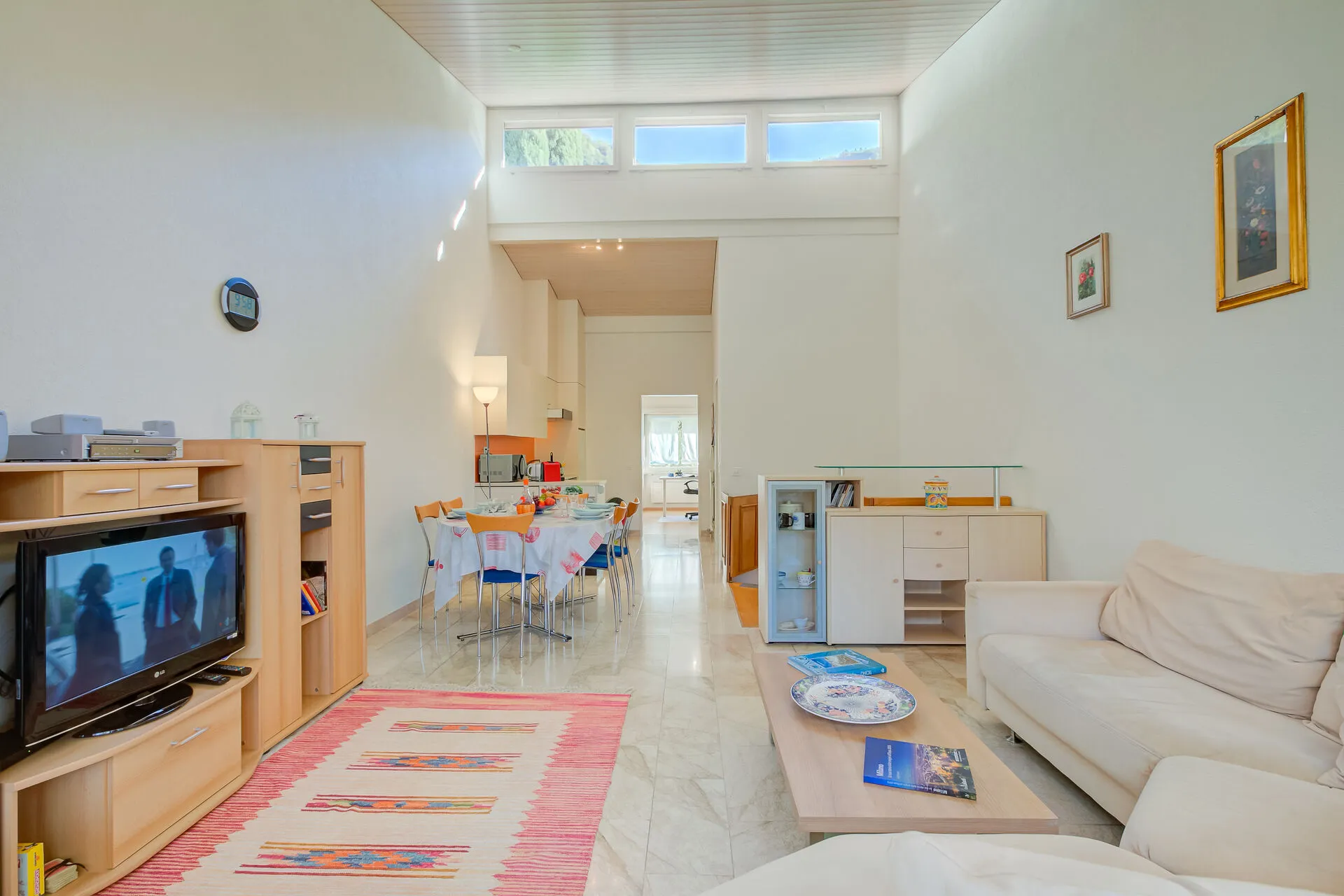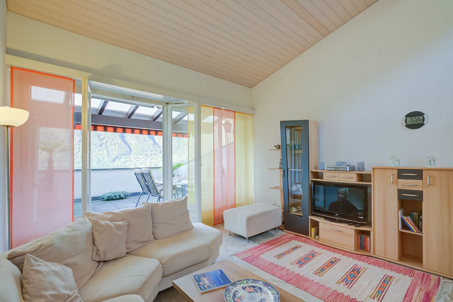 Escape to this airy light-filled apartment looking out over Lake Lugano! This duplex for 4, is part of a small complex, with two shared pools, makes the ideal choice for friends or family who want to relax and explore one of the most beautiful regions of Switzerland. Hiking through the hills in autumn is particularly picturesque. Children will enjoy hunting for chestnuts and adults can appreciate the magnificent views. In the winter it is the perfect spot for relaxing in tranquil surroundings. Guests are spoilt for choice in the spring and summer months, with hiking or cycling through gorgeous countryside, boat trips or just lying by the pool in the sun.
