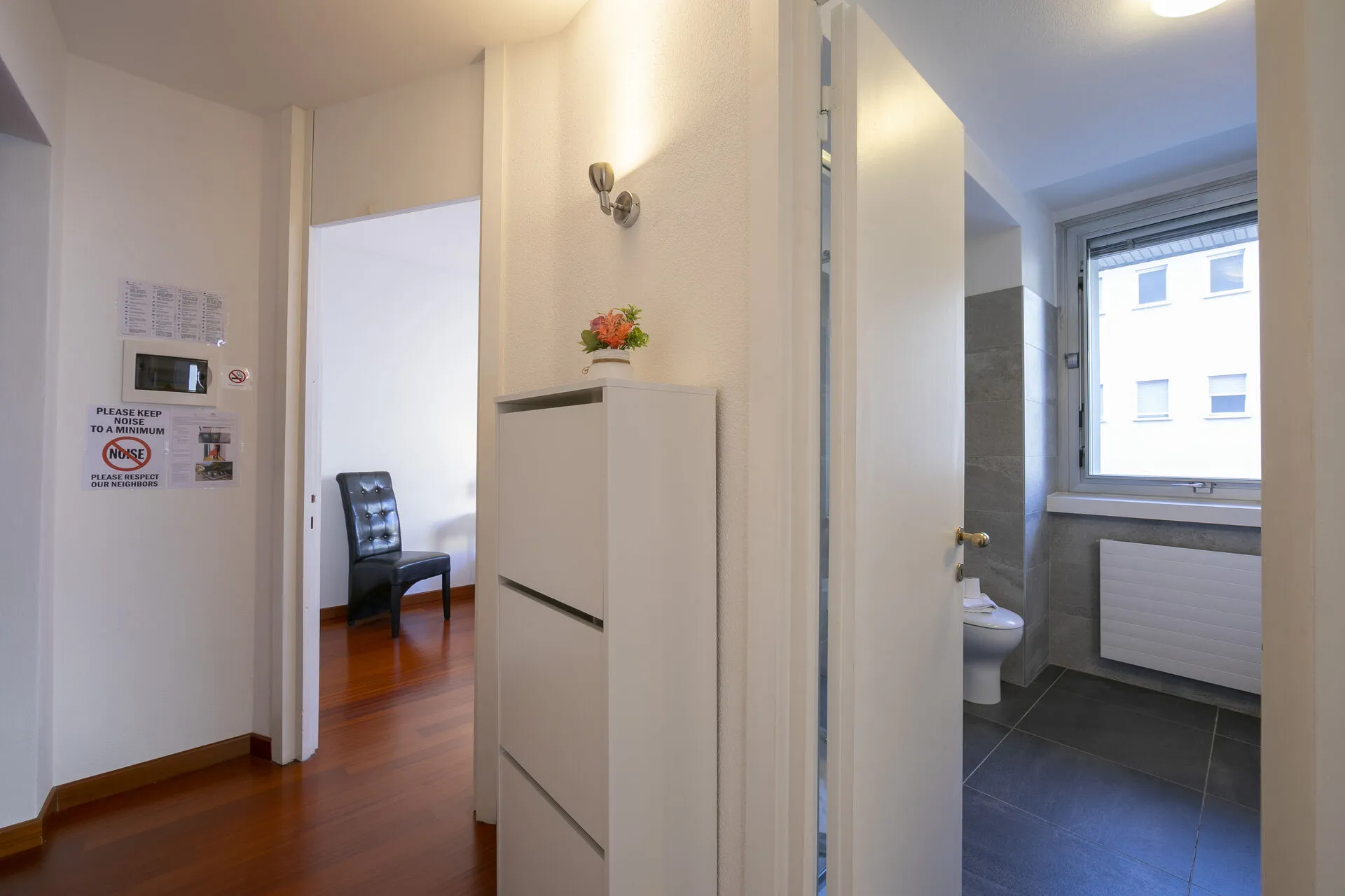 The holiday apartment enjoys a well-serviced and well-connected location in Lugano, from where a wide range of restaurants, a supermarket, the Cassarate ferry terminal, bus stop and even the funicular to the sunniest summit in Ticino, Monte Brè, is within a 10-minutes walking distance.