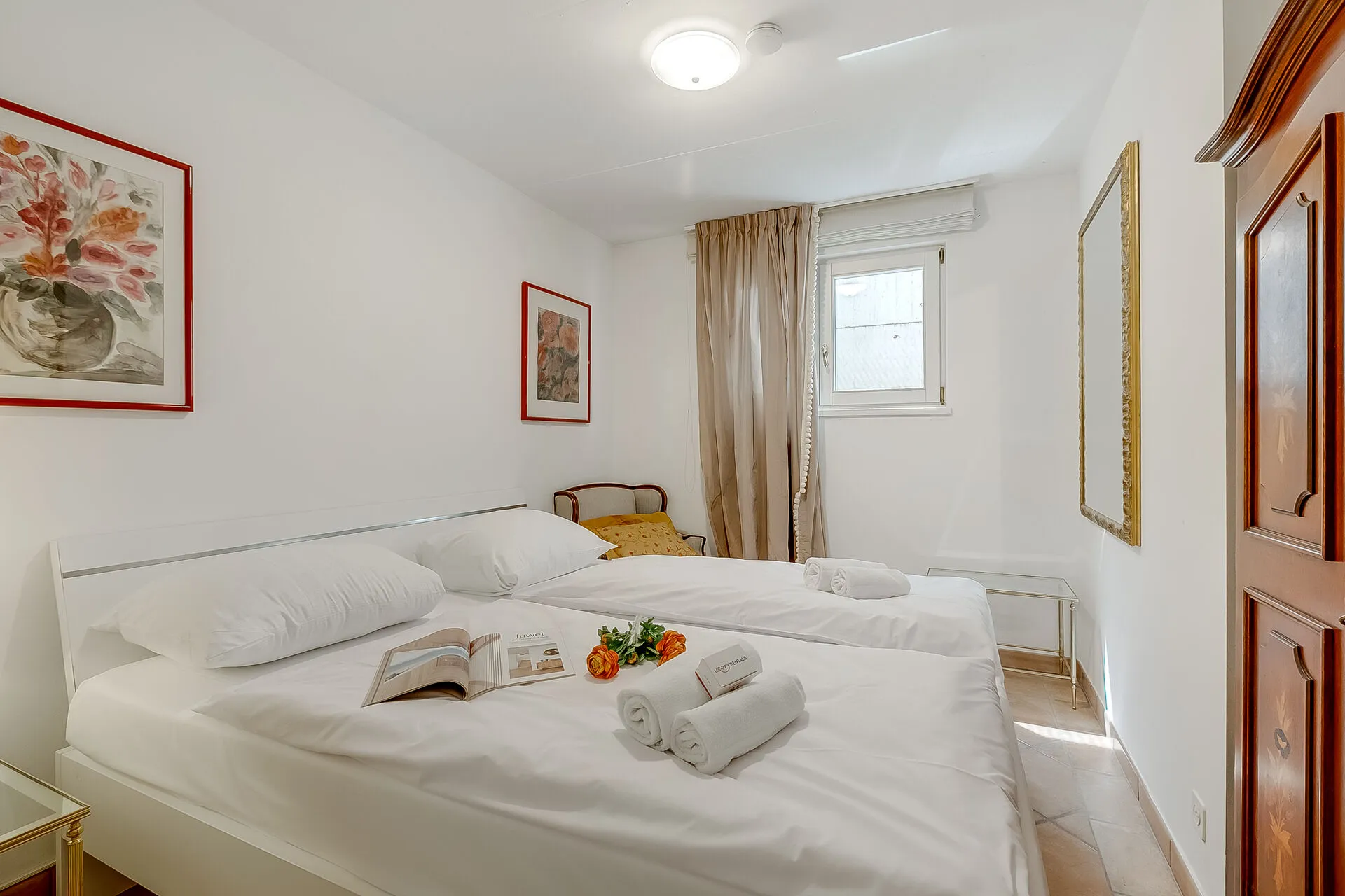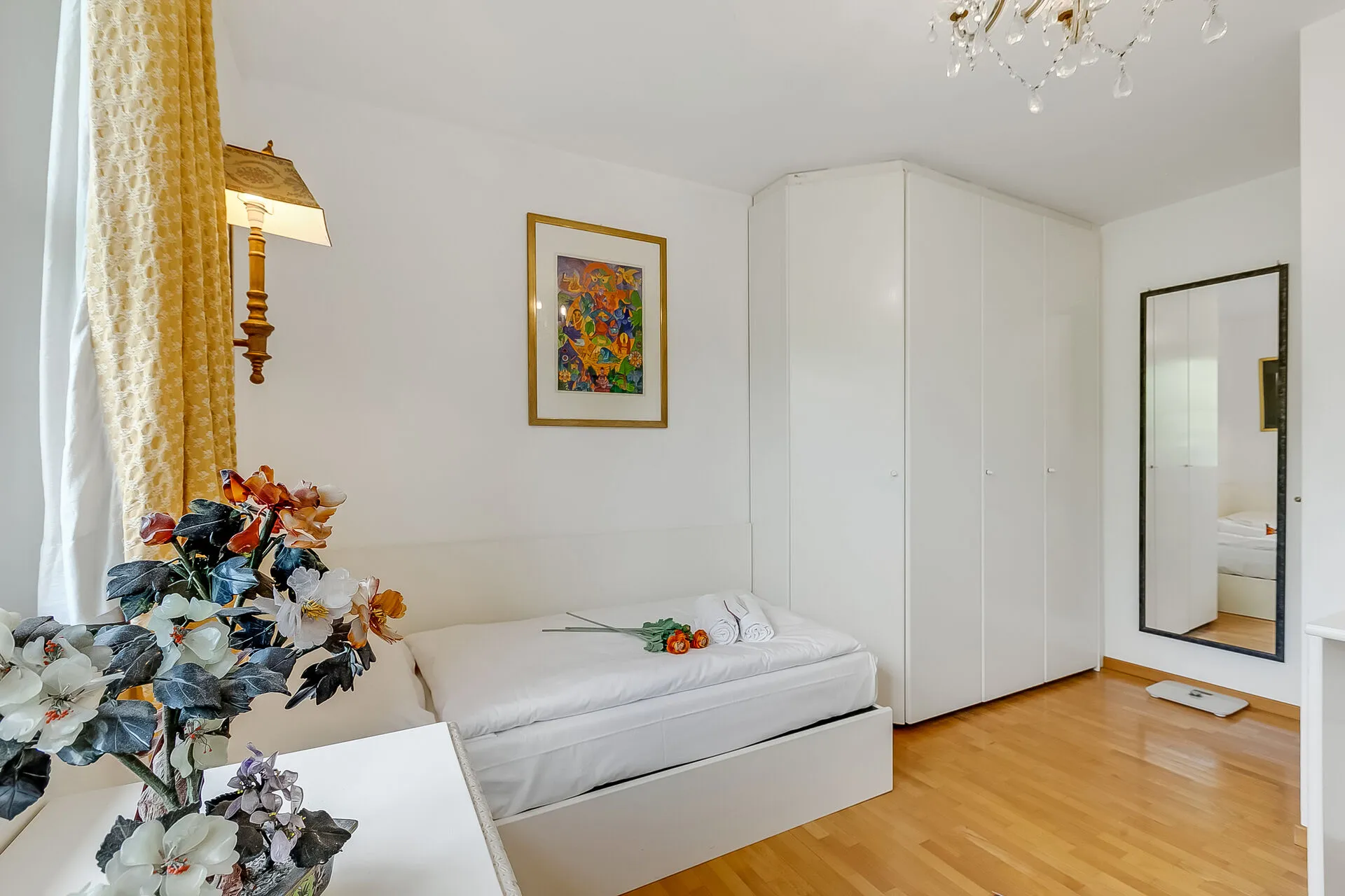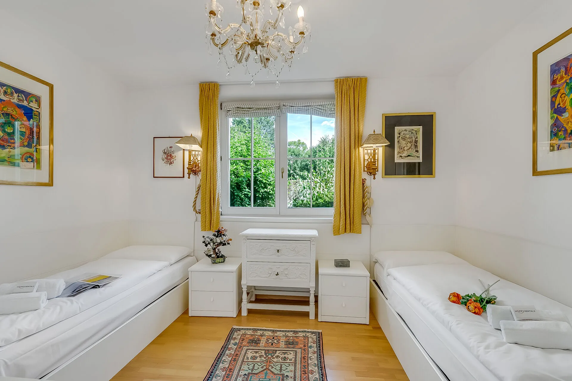 Bedroom 4: The fourth bedroom is on the lower ground-floor, accessed via a separate staircase. It is furnished with 2 single beds and a wardrobe.