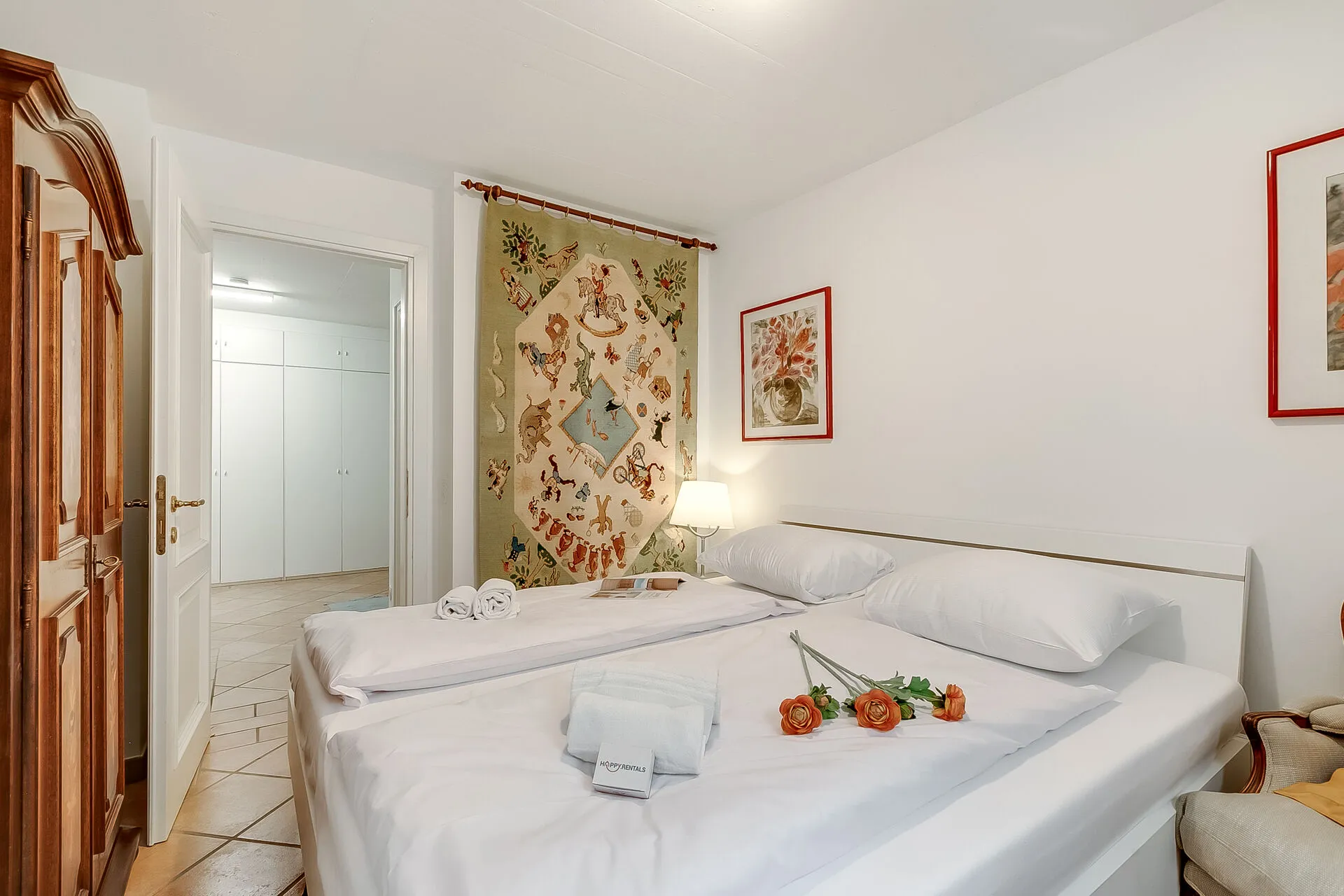 Bedroom 2: The cosy second bedroom has a double bed, an antique wardrobe and an en suite bathroom