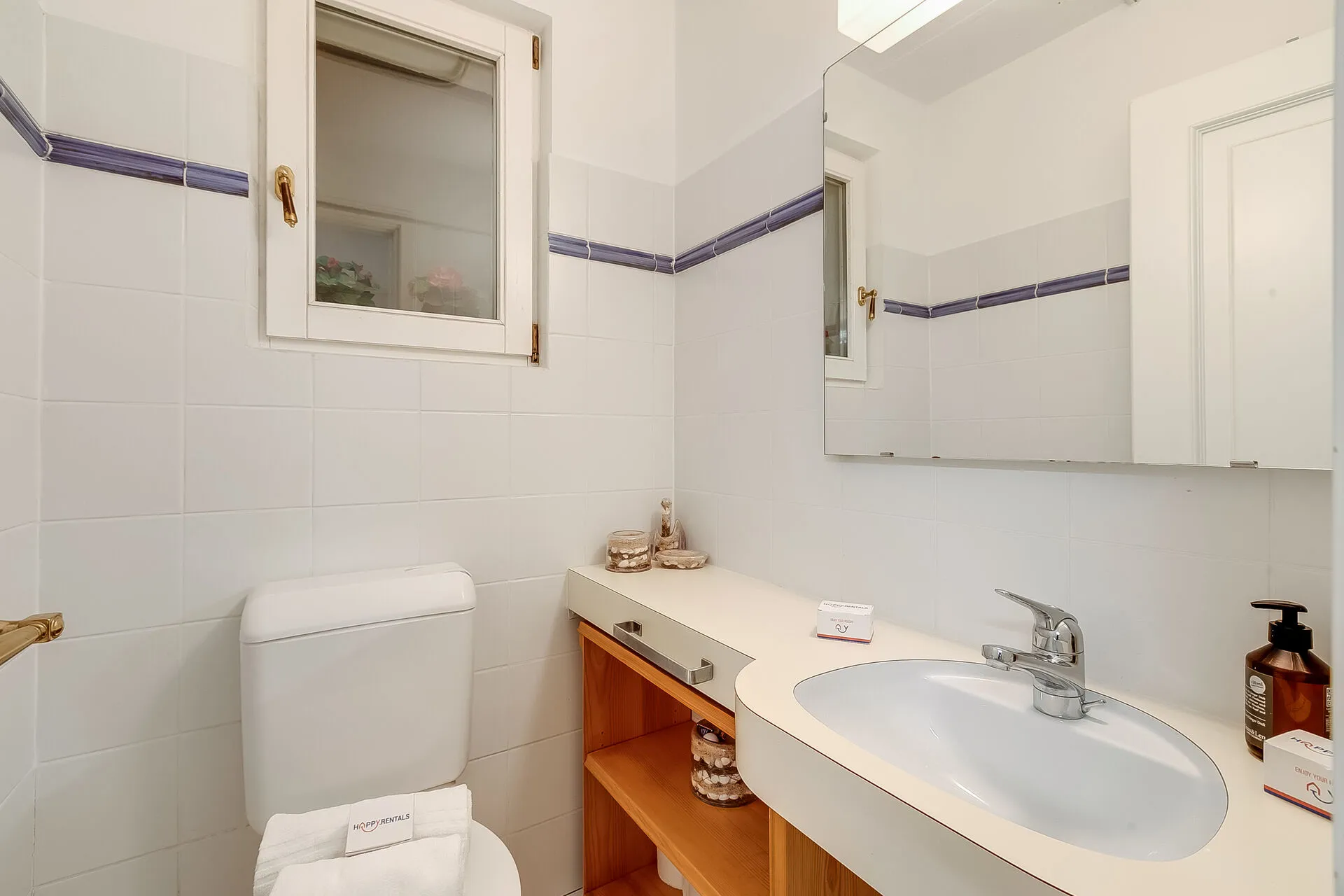 Bathroom 2: This bathroom, connected to bedroom #3, has a full bathtub with a shower attachment, a basin and WC.