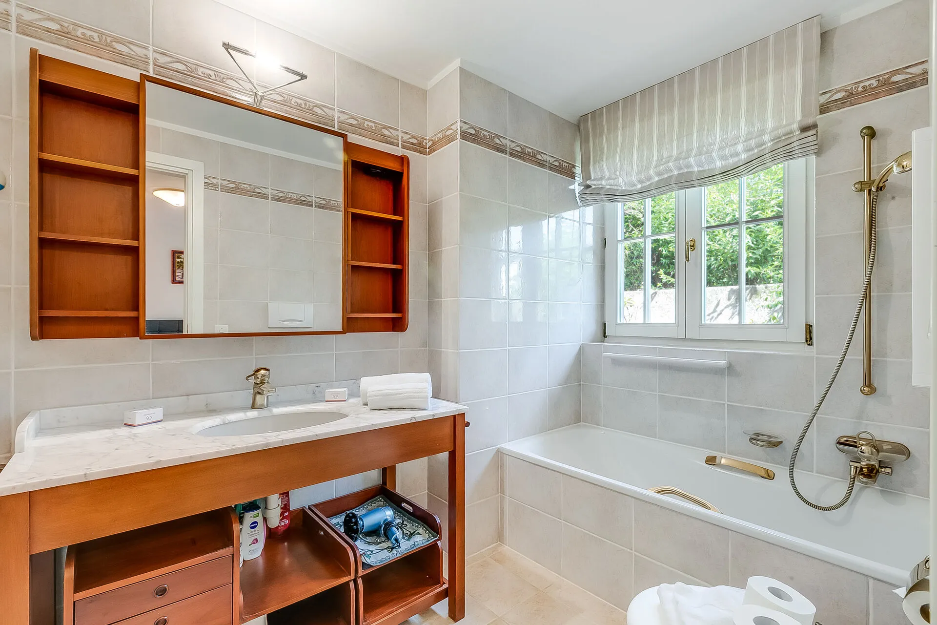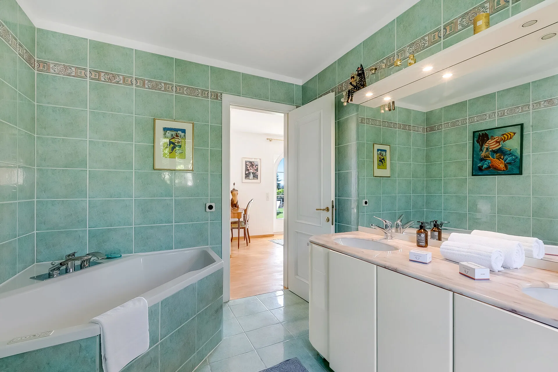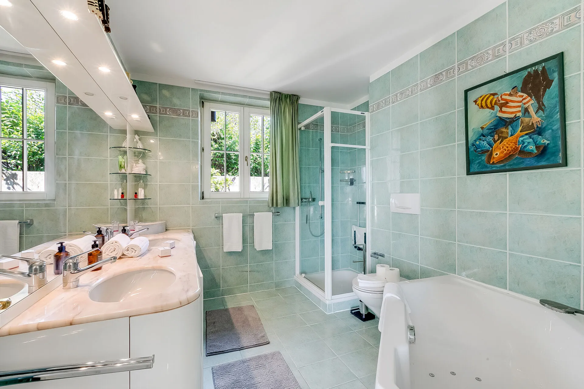 Bathroom 1: En suite to the master bedroom this large bathroom is appointed with a bathtub, separate shower, 2 basins and WC.