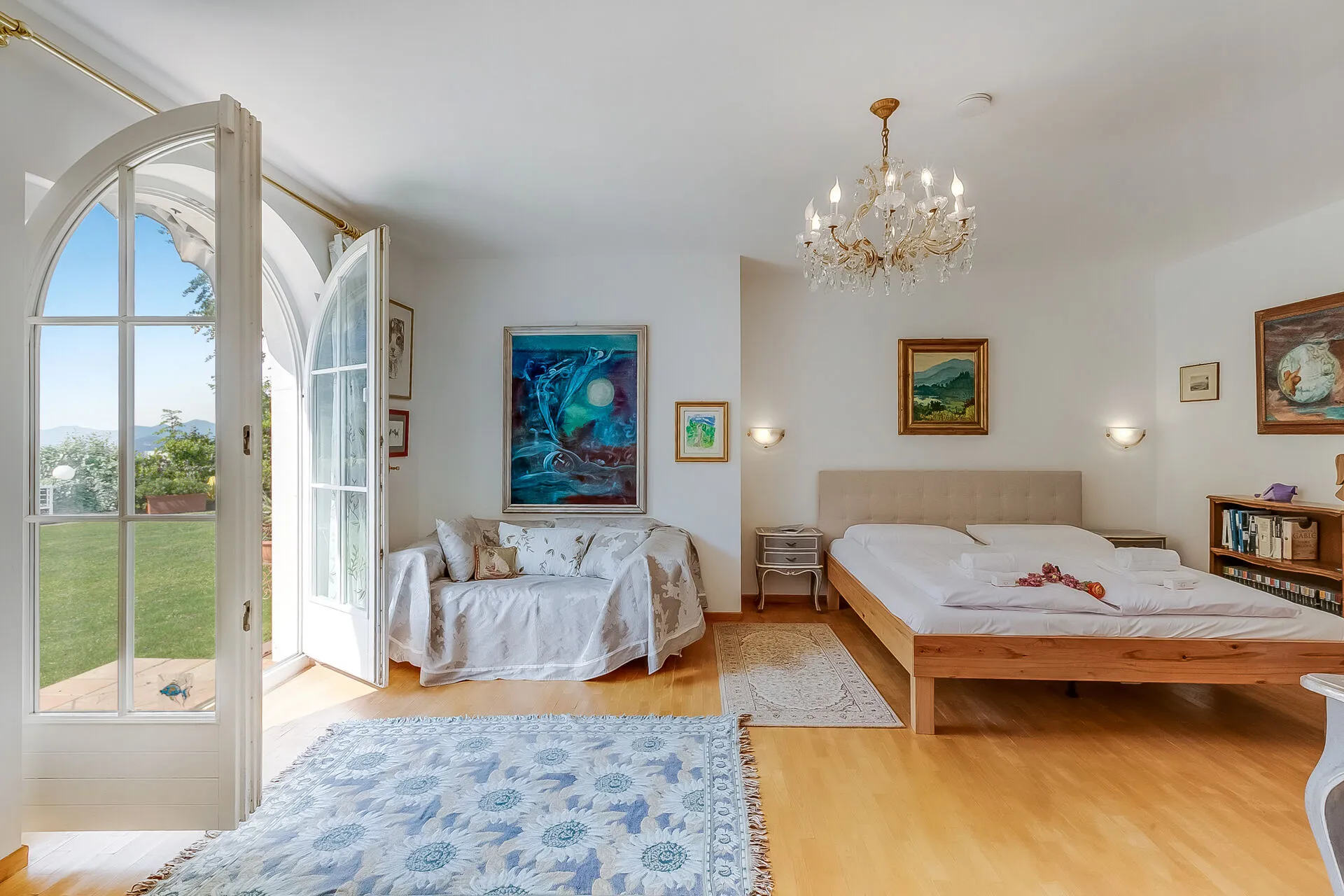 The villa is hills above the fascinating city of Lugano, less than 4km from the Italian border. There are some beautiful hiking routes in the hills or down by the lakeside on the famous Sentiero dell’Olivo. For truly stunning views over the lake and the mountains, visitors should head to Monte Brè (12 minutes), reached via the inclined funicular.